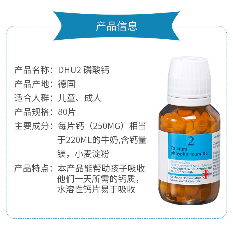 Germany purchases DHU calcium phosphate for infants, children, babies, adults, calcium tablets for pregnant women, water-soluble calcium 80 tablets NR 2