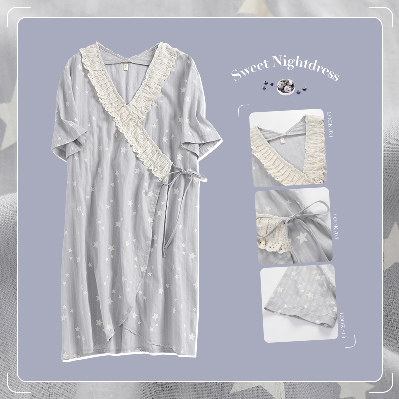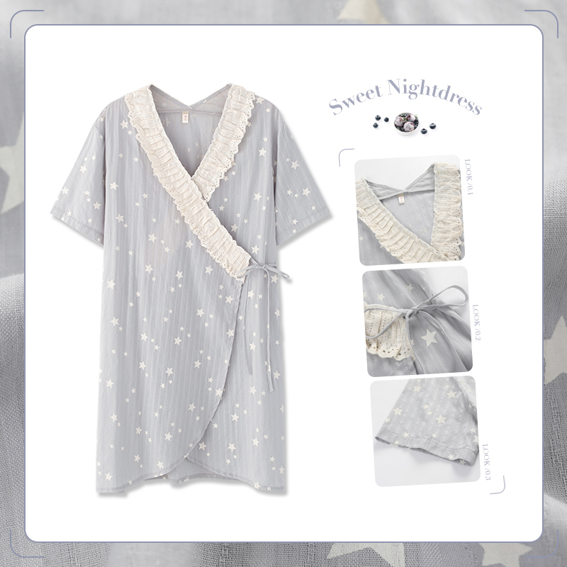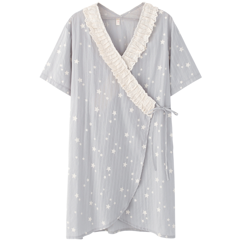Sleeping Skirt Woman Summer Pure Cotton Short Sleeve Sexy Cute Princess Wind Palace Court Day Style Kimono Kimono Sleeping Dress Skirt