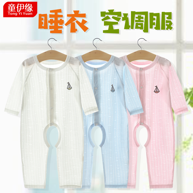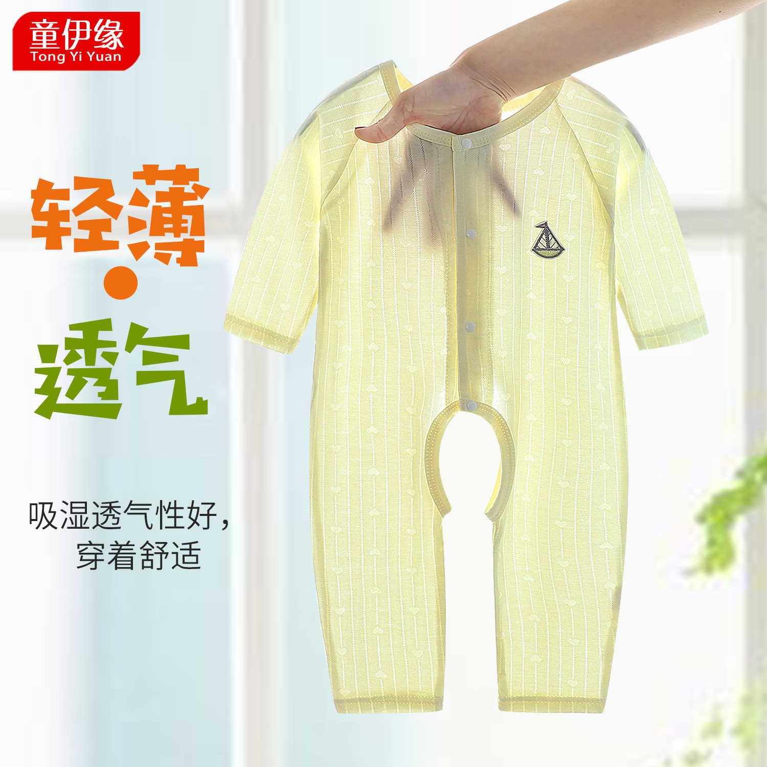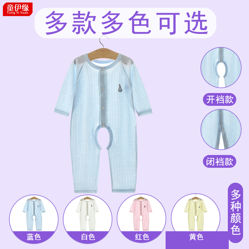 Baby one-piece clothes baby summer thin section long-sleeved rompers newborn crawling clothes bamboo fiber pajamas air-conditioning clothes