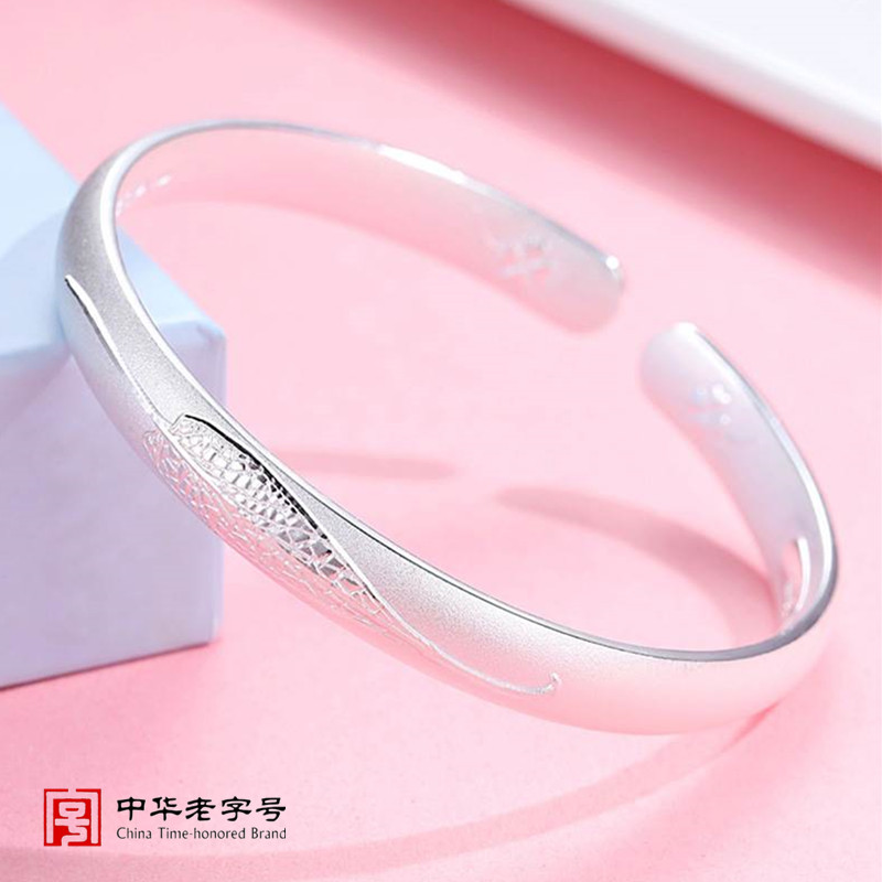 one thousand Foot 100 Lap Gift One Leaf's Boat Silver Bracelet 999 Pure Silver Female Bracelet Student Four Leaves Grass Leaf Opening Bracelet
