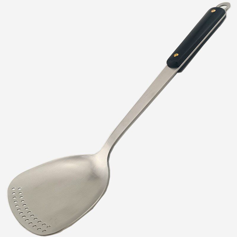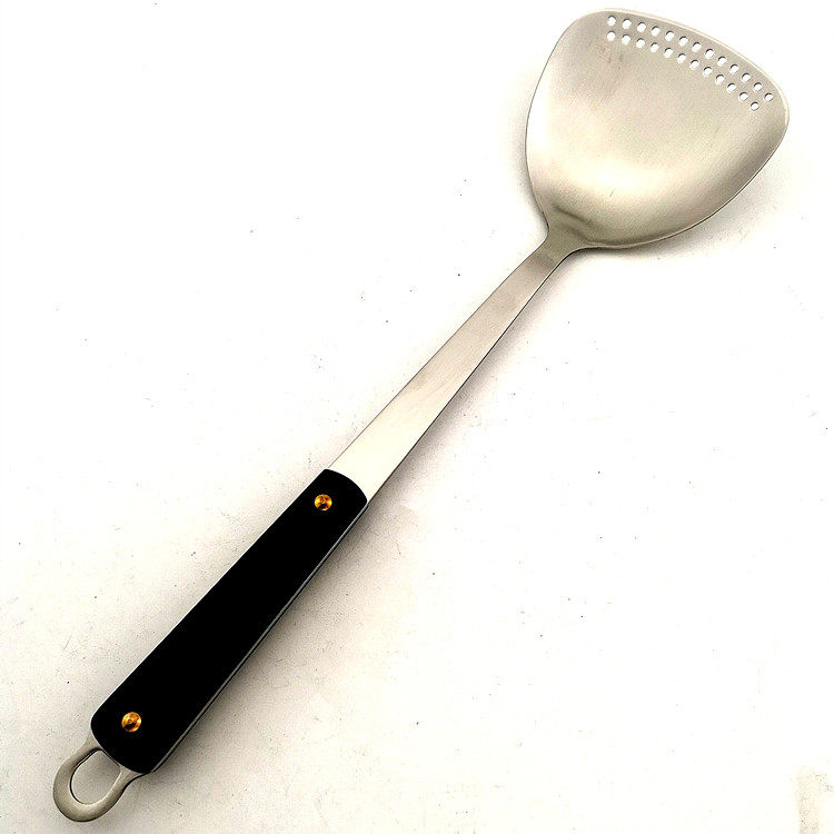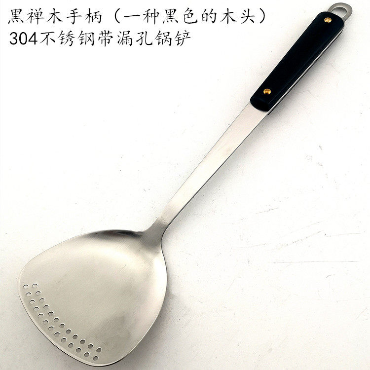 Wanglilai Spatula 304 stainless steel spatula Household black zen wood vegetable spatula with leak hole insulation fried spatula Kitchen fried spatula