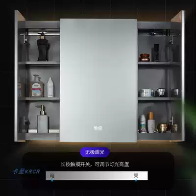 Mirror cabinet intelligent defogging bathroom storage box combined with cosmetic room toilet hanging wall type stainless steel small apartment with lamp