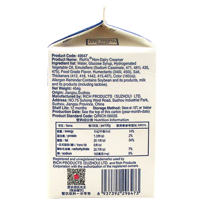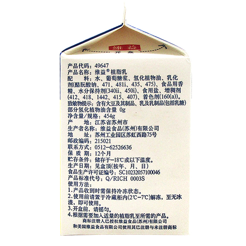 Wiyi Plant Fat Milk 454g whole case 24 Box 454ml Lipid Milk Tea Shop Special RICHS (whole box 230)