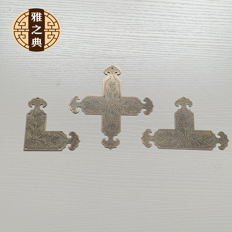 Imitation ancient Chinese bronze corner flower cabinet door case door hollowed out full copper angle sheet pure copper corner sheet wrap angle