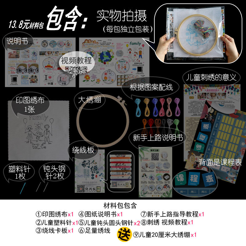 1 Motherland Embroidery Material Pack (send embroidery stretcher) 1 Motherland (send embroidery stretcher) with 7-inch photo frame 2 I love China embroidery material pack (send embroidery stretcher) 2 I love China (send embroidery stretcher) with 7-inch photo frame