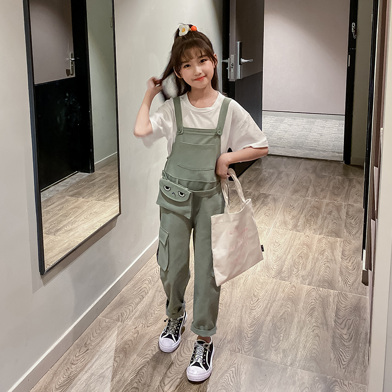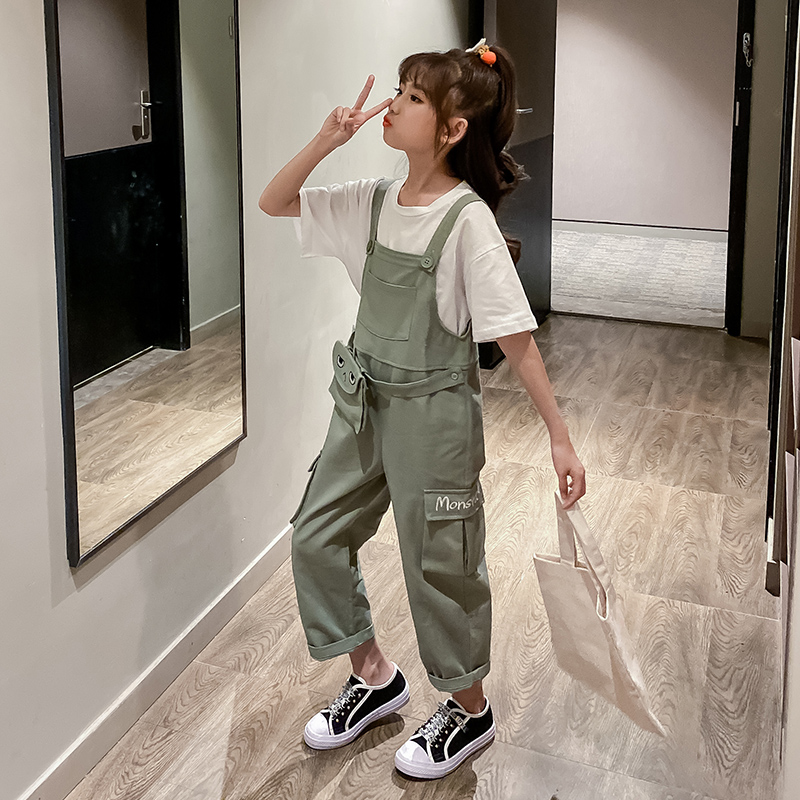 Port Wind Girl New Pants Spring Autumn Clothing Tide Cards CUHK Children Sports Loose Cuddling Bag Pants Children Online Red Jeans