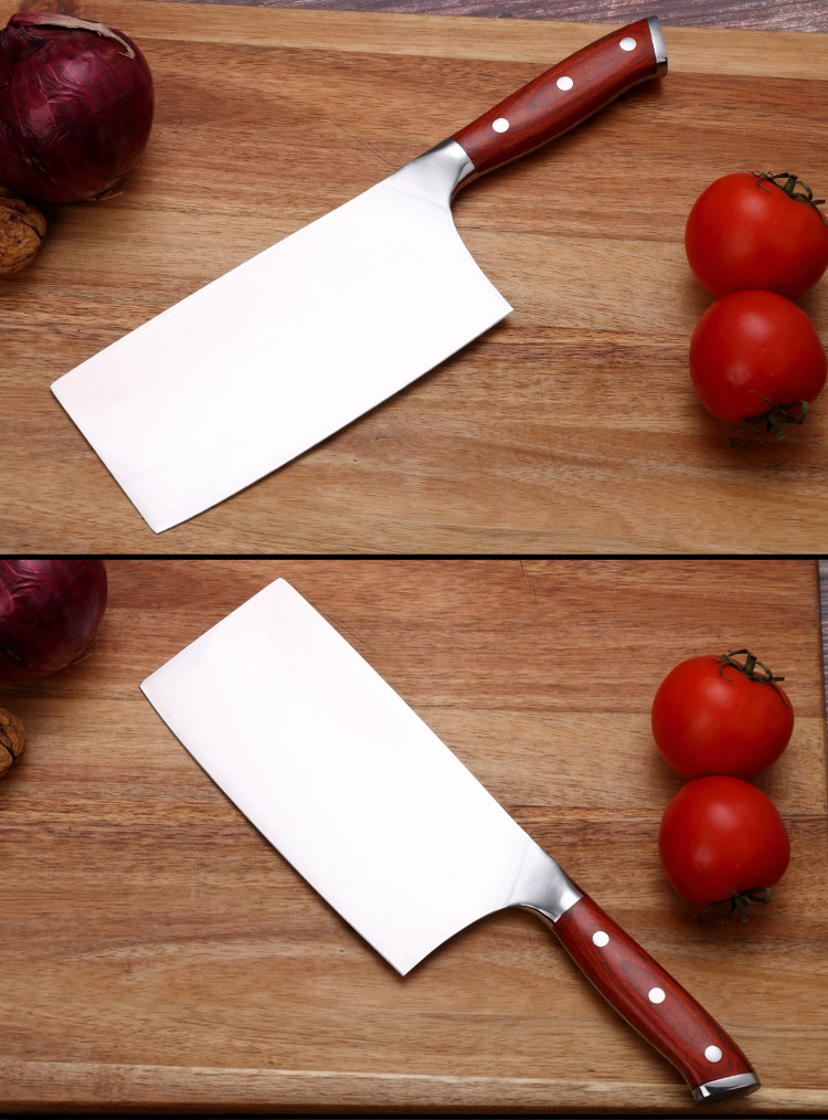 Yangjiang knife double steel head red solid wood handle kitchen knife sliced meat cutting knife family hotel stainless steel knife