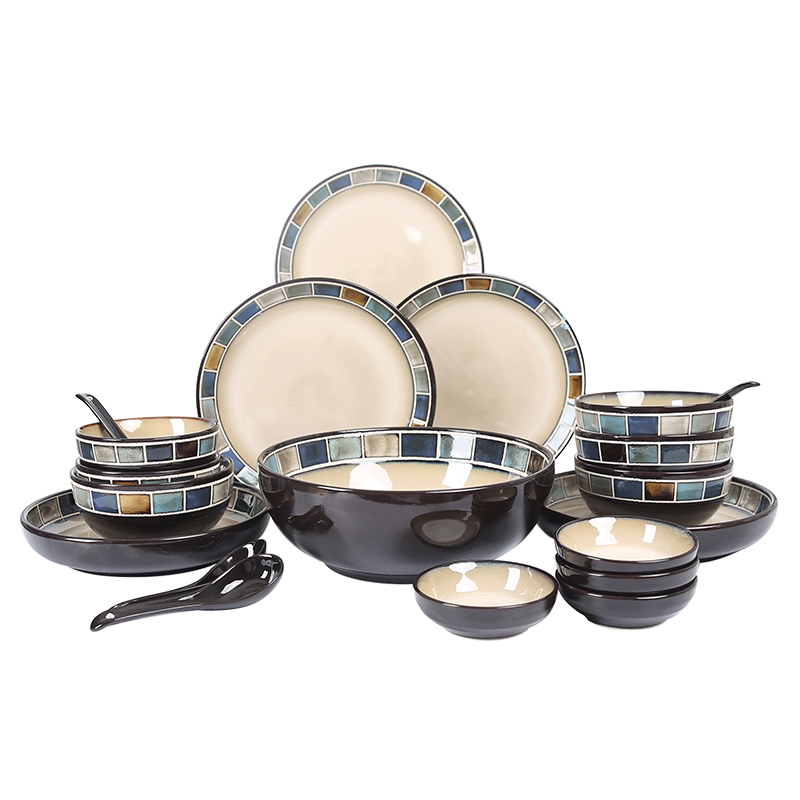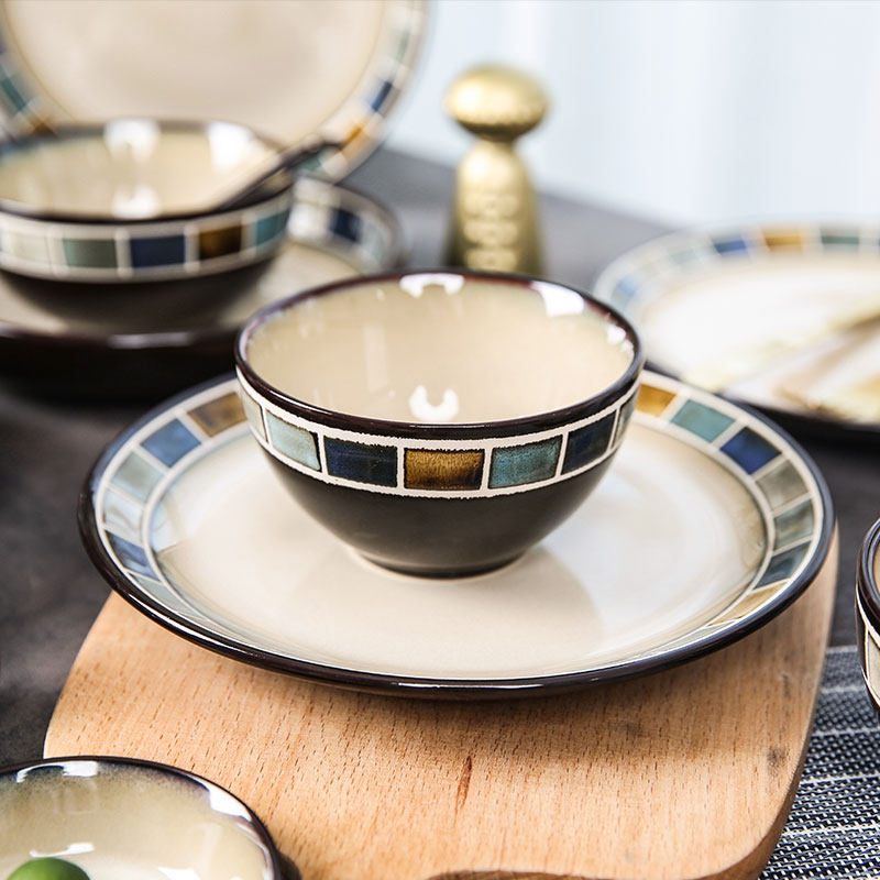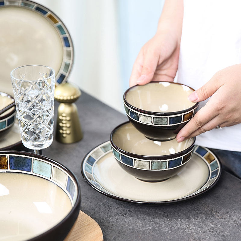Jade Springs pane American Bowl Suit Ceramic Cutlery Nordic Bowl Pan Creative Light Lavish Retro Home Plate-Taobao