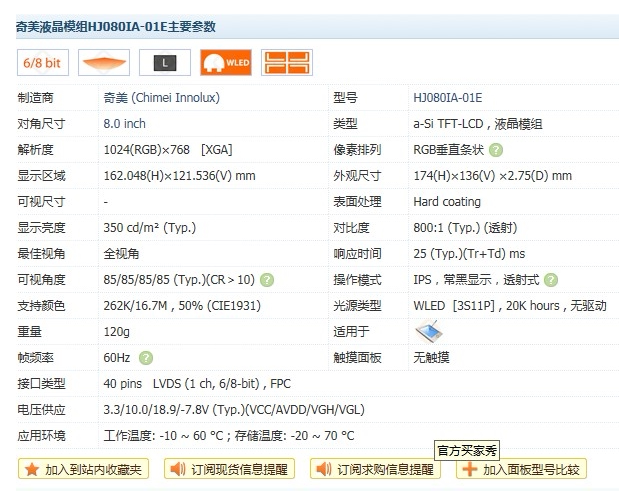 Pünel 8 polar speed dual-core version of small bird display 8 inch LED LCD liquid crystal screen with wide viewing angle