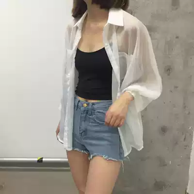 Clothing female student Korean medium and long version bf loose white shirt top ultra-thin long-sleeved Chiffon cardigan summer dress