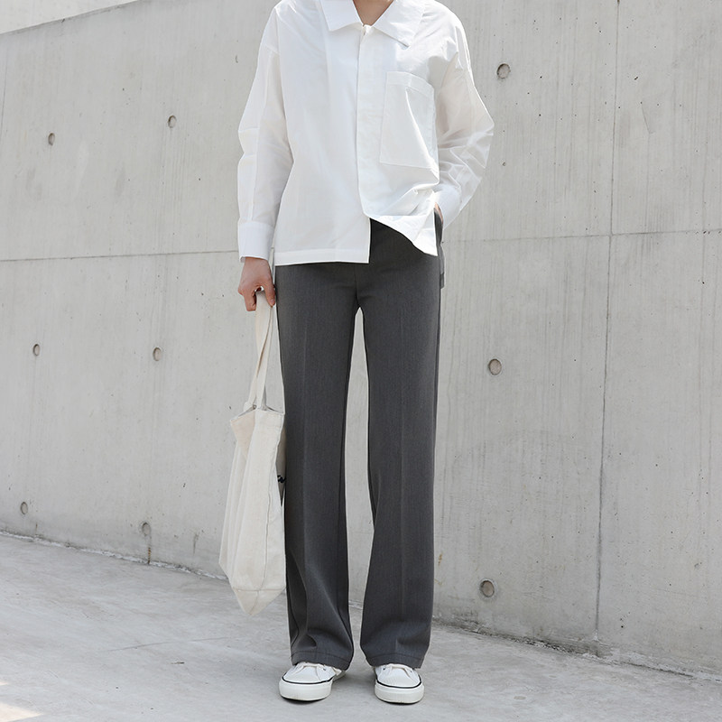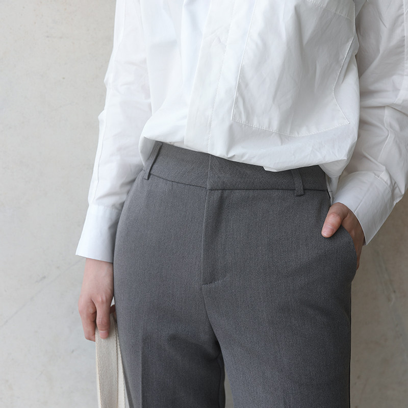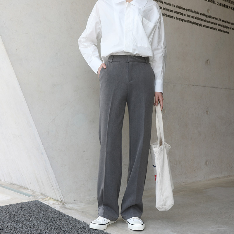 Out of pick foggy face grey nostalgic Inn dark grey micro wide leg straight barrel long pants with slim high waist tug pants