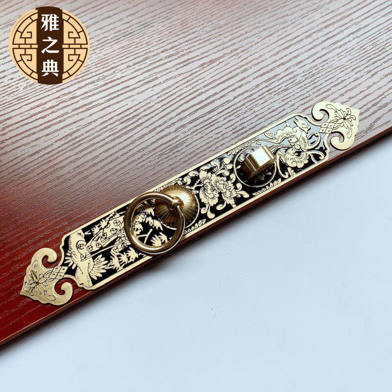 Chinese Ming and Qing furniture antique pure copper handle overall cabinet wardrobe shoe cabinet door drawer handle retro vertical copper handle