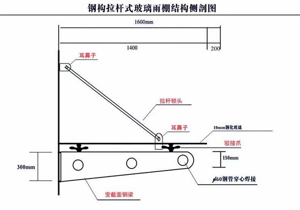 Canopy steel beam fittings 304 stainless steel tie rod ear plates Glass canopy cable-stayed rod base