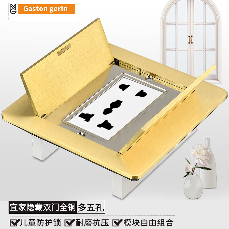 Melanzhan concealed pure copper ground socket more than six-hole socket double door to insert home waterproof floor socket