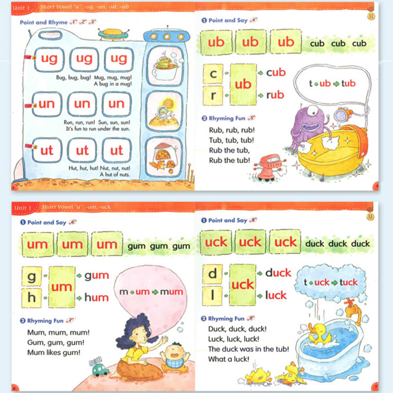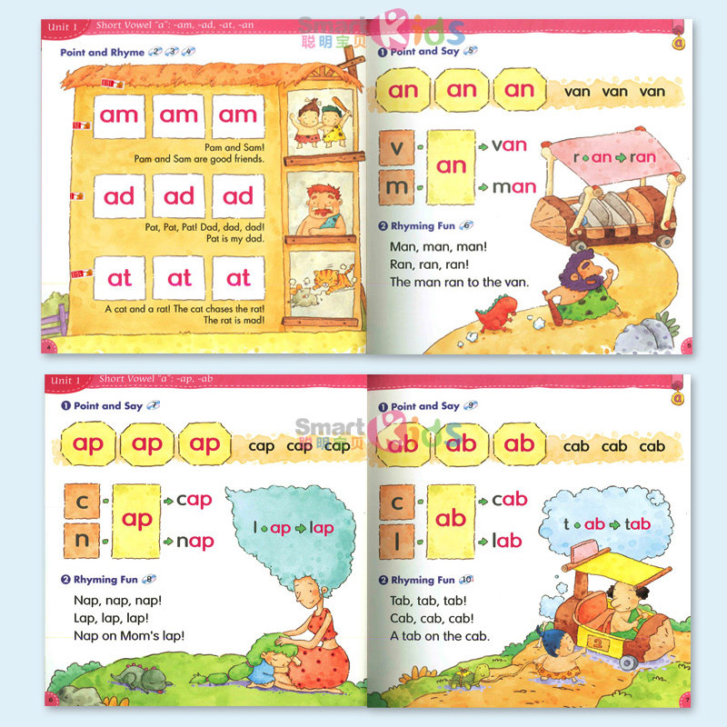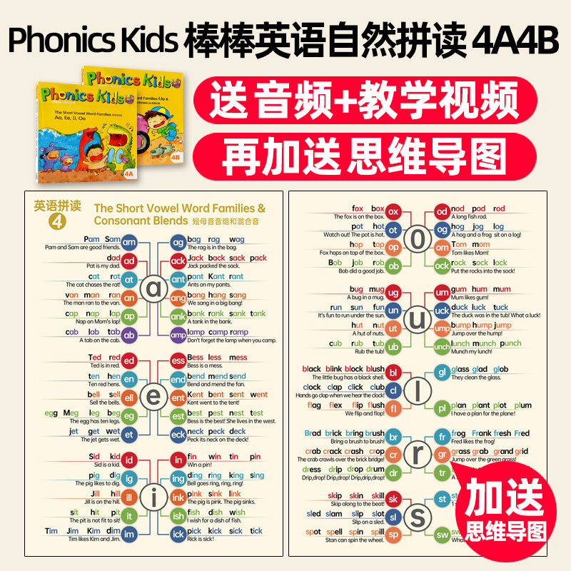 Genuine teacher recommends Bangbang children's English natural spelling Phonics Kids 4A4B alphabetic spelling method short vowel group mixed sound group support small master tadpole reading pen