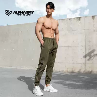 Alpharmy fitness training pants men's trendy sports drawstring pants quick-drying loose breathable running casual thick cotton pants