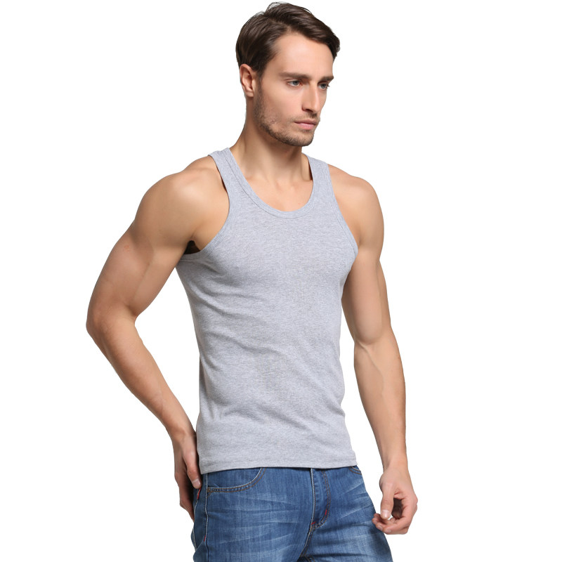 Summer vest men's pure cotton two-ways two-strand stiff two rib straps to wear in motion cross-bar to bottom white quarts