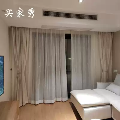 Modern light transparent impervious cotton linen yarn curtain balcony Nordic thick partition semi-shading white yarn curtain sand