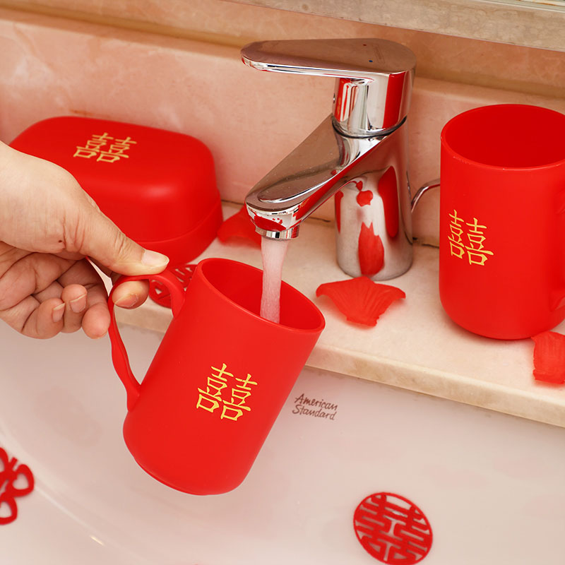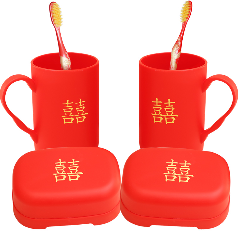 Wedding Soap Box Red Festive Tooth Cup Pair Toiletries Toothbrush Wash Suit Woman accompanied by dowry Supplies