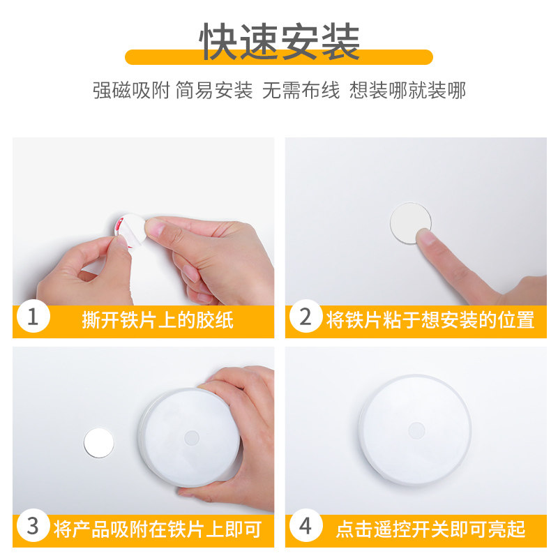 LED small night light remote control adsorption type wireless free wiring adhesive rechargeable super-bright spotlight wine cabinet display cabinet