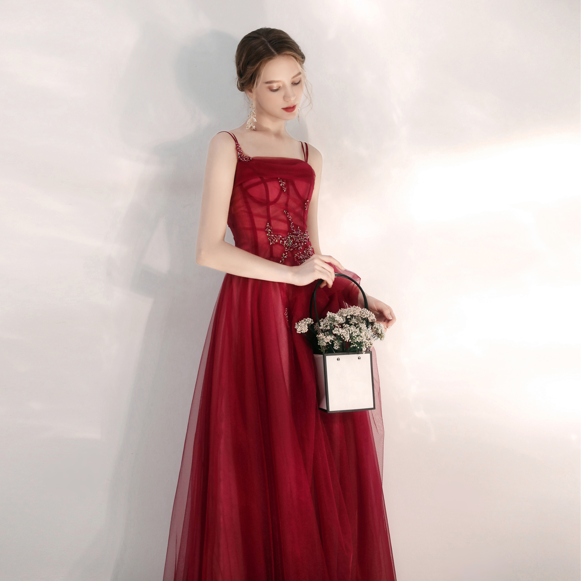 Toast dress 2022 new summer bride wedding wine red temperament sling dinner party small long dress female