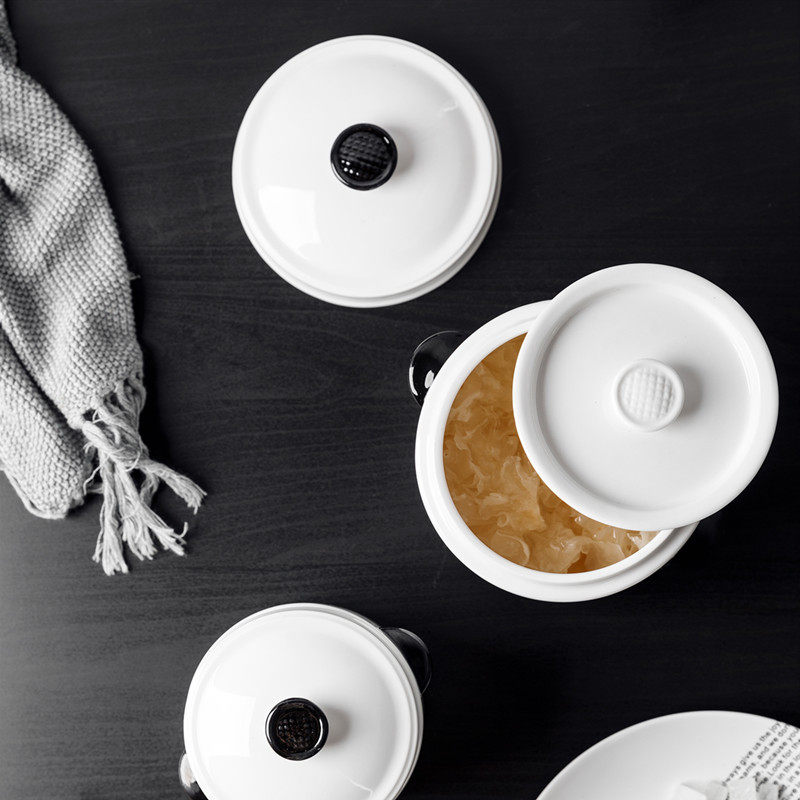 Ceramic water-proof stew pot with lid and ear cover double-ear stewed bird's nest cup steamed egg cup stew pot household small soup pot stew cup bowl