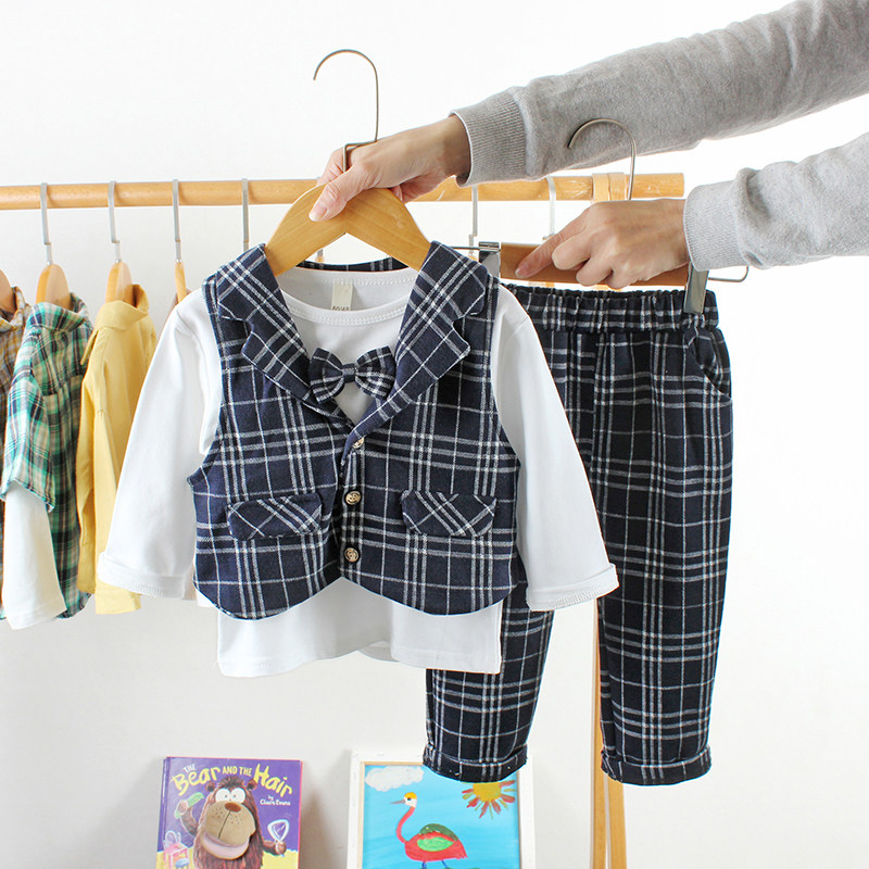Children's vest suit three-piece suit spring and autumn foreign style male baby 1-3 years old wedding dress toddler clothes child