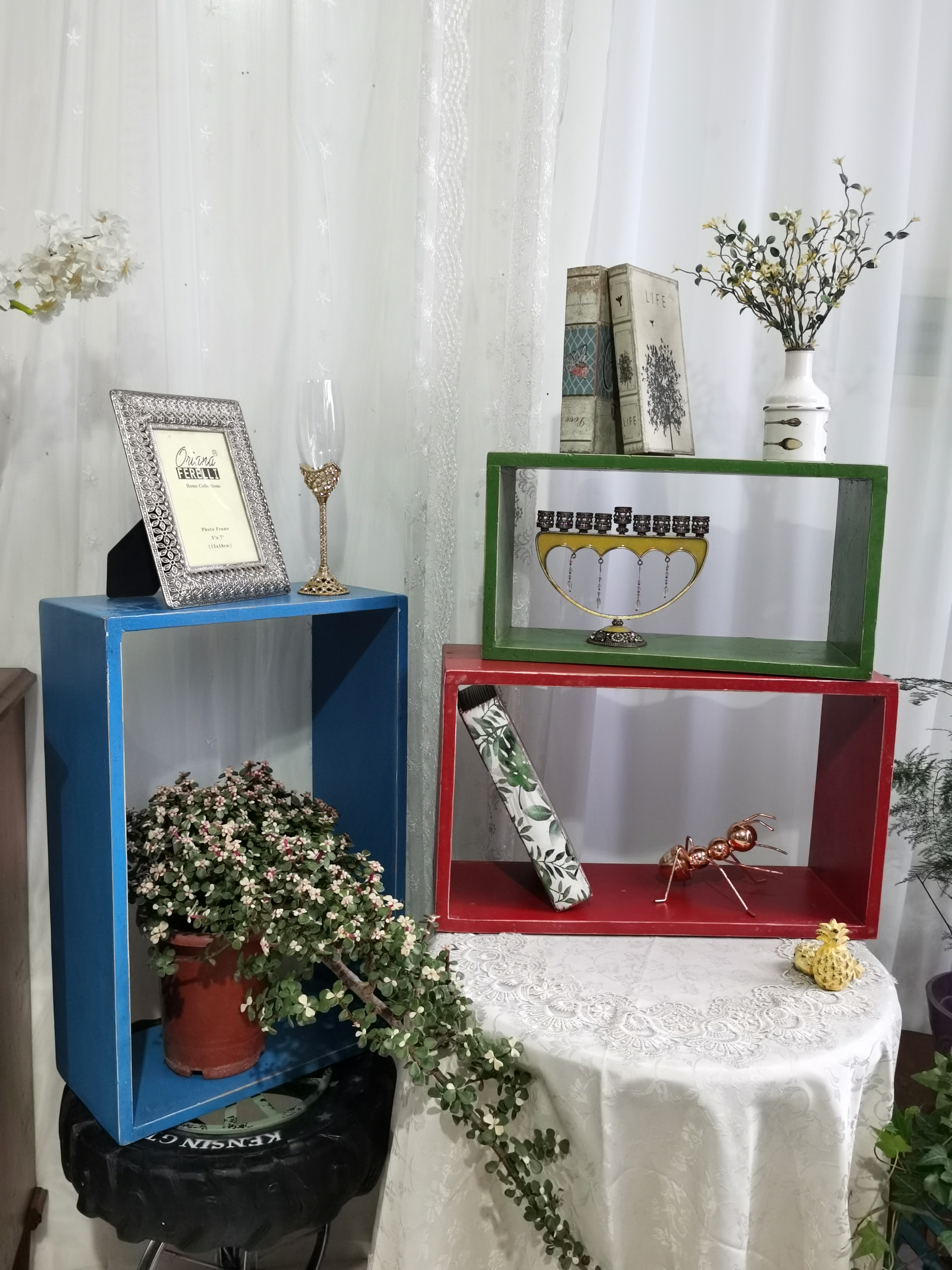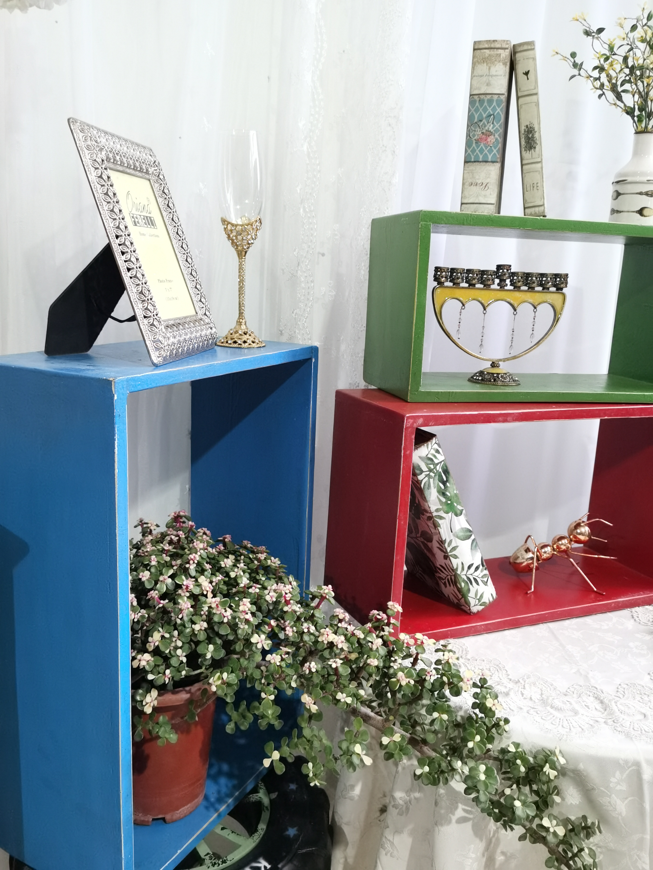 Multi-function wall shelf Wall hanging frame lattice photo frame display stand TV background decoration rack 3-piece set
