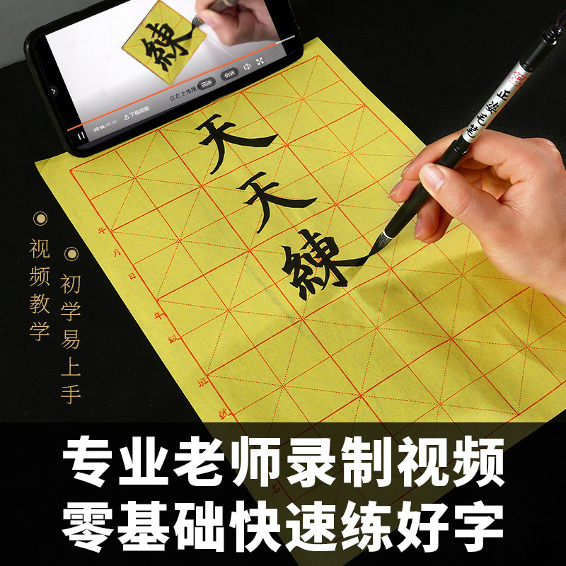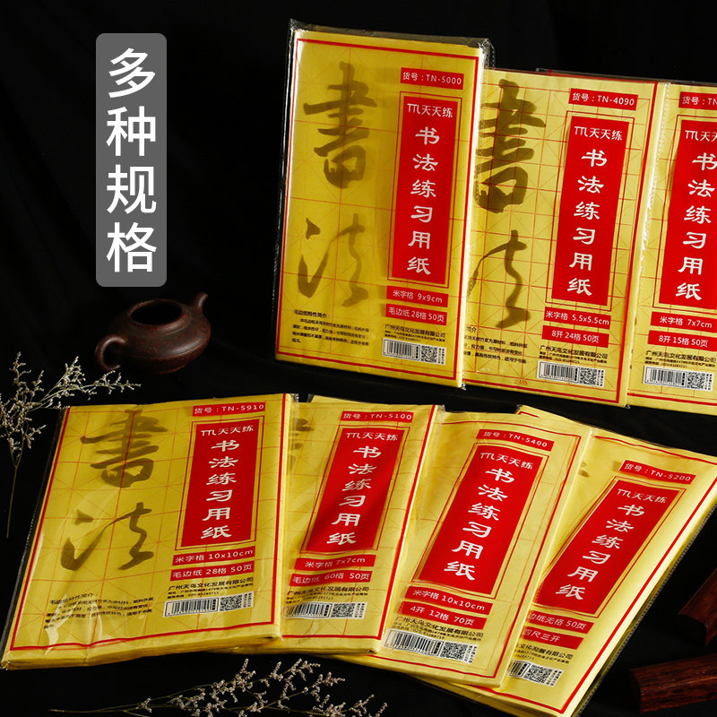 Raw edge paper Mizi grid Xuan paper calligraphy special paper pure handmade Yuanshu paper half-cooked rough edge paper beginners thickened calligraphy practice paper 28 grid brush writing paper without grid practice calligraphy paper yellow paper - Taobao