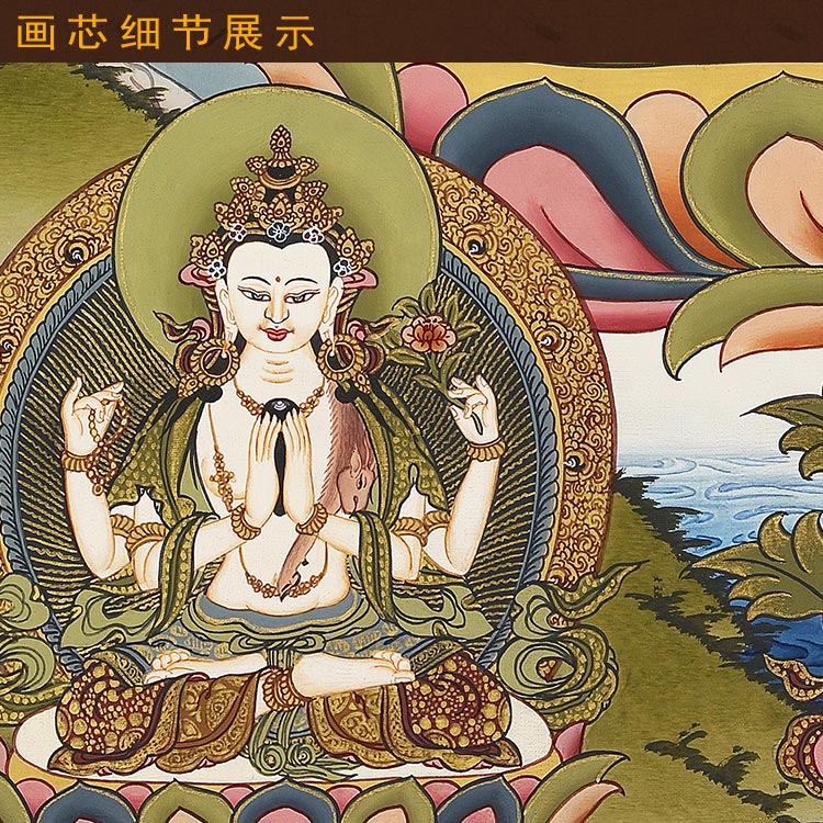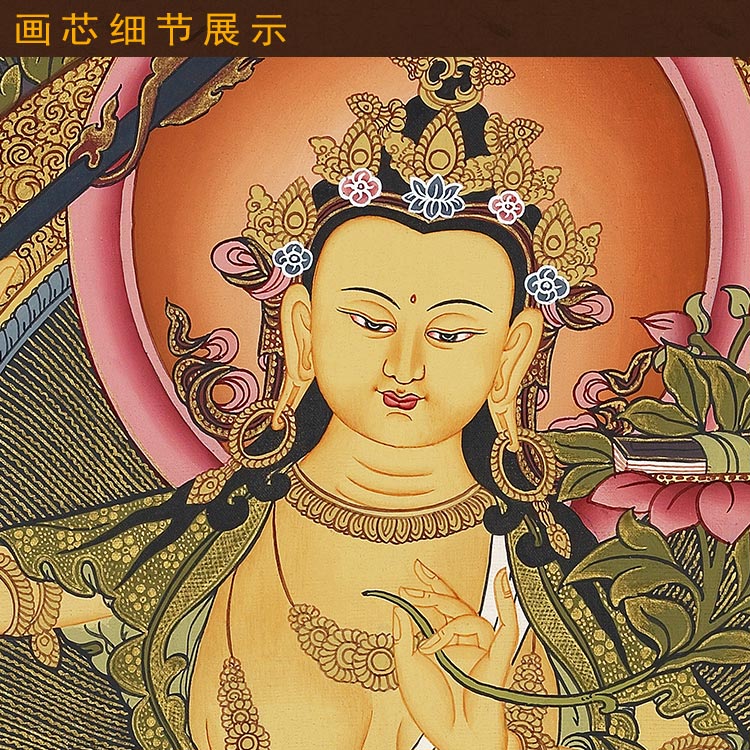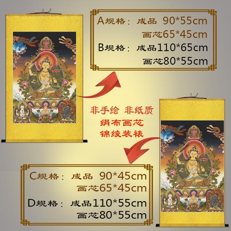 Portrait of Manjushri Bodhisattva Silk Material Thangka Buddha Statue Painting The living room of the Buddhist hall is decorated with silk scroll scroll hanging painting