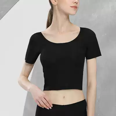 Ice ribbon chest pad bra one-piece short sleeve t-shirt women's summer thin style slim short short open navel bottoming top