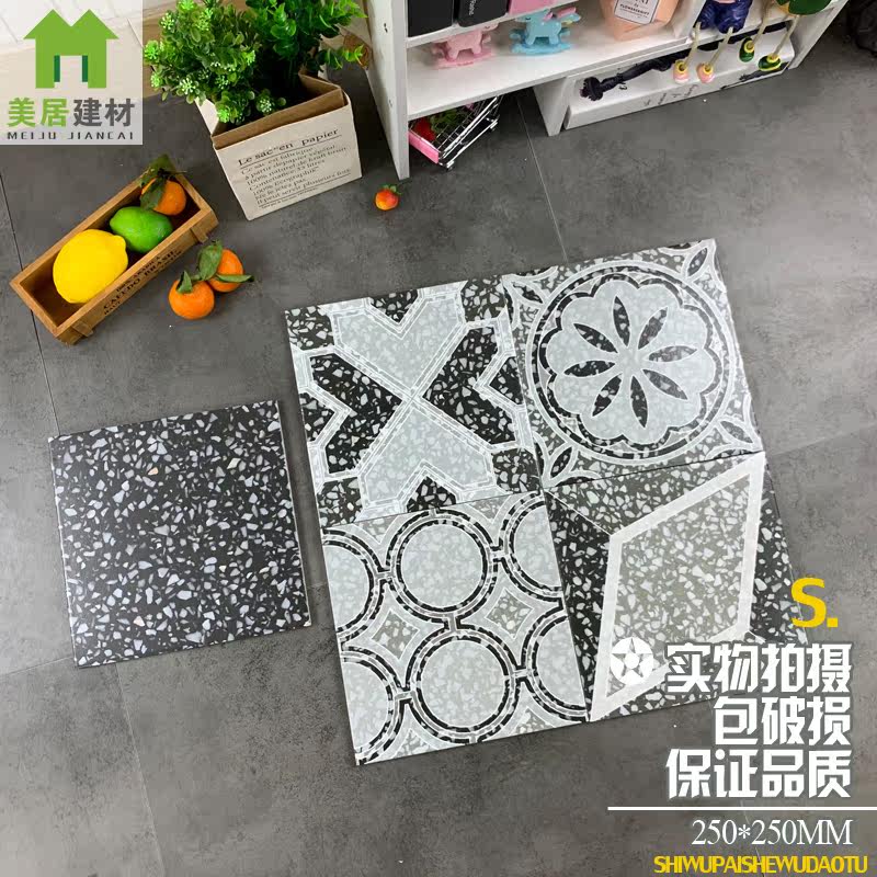 Powder room kitchen flower tiles floor tiles wall tiles Nordic black and white terrazzo tiles wear-resistant non-slip balcony floor tiles 250