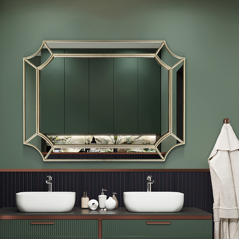 Nordic light luxury bathroom mirror Wall-mounted makeup mirror Makeup mirror Entrance decoration mirror Bathroom wall-mounted mirror Custom mirror