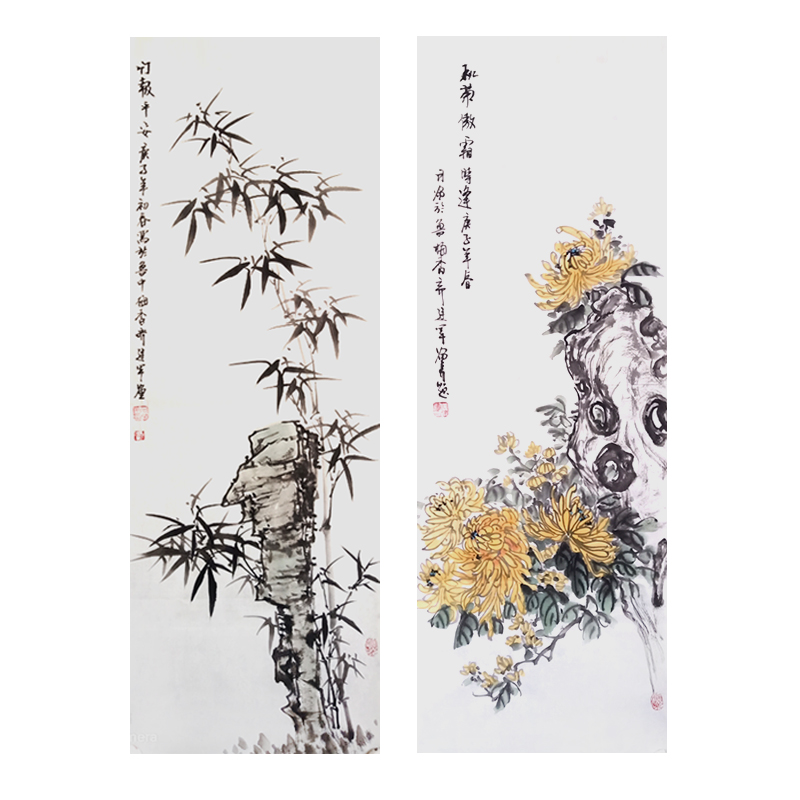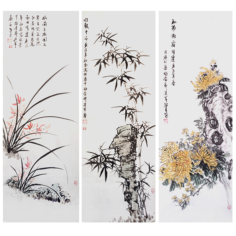 Chinese painting freehand ink flower and bird painting calligraphy and painting works four gentlemen four screens study celebrity pure hand-painted plum, orchid, bamboo and chrysanthemum