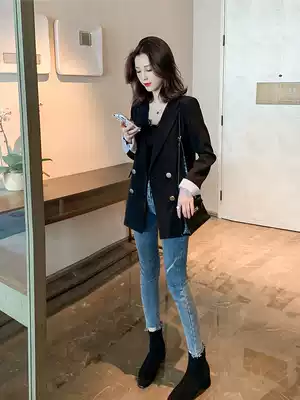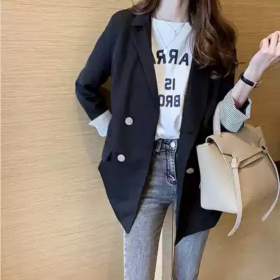 Small suit jacket women's 2021 spring new loose temperament Korean casual British style black suit top
