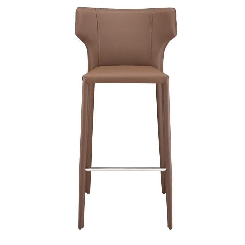 Nordic light luxury home bar chair Italian saddle leather bar chair designer modern minimalist restaurant island table high stool