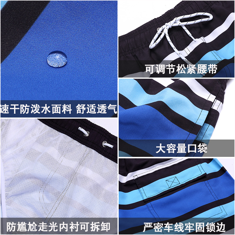Beach pants men's seaside vacation striped four-point shorts Swimming trunks quick-drying can go into the water loose anti-embarrassment casual shorts