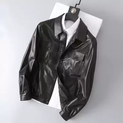 Broken men's leather jacket imported lambskin casual short lapel leather leather jacket men's coat