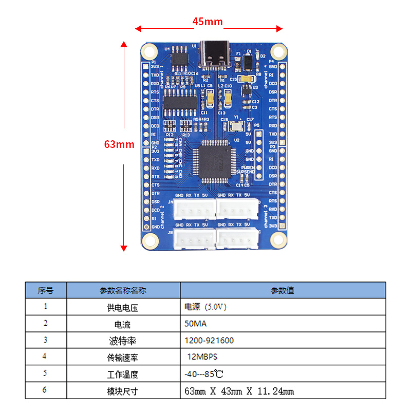 Witt Intelligent USB transfer 4-way TTL serial port FT4232HL multi-channel serial port 5V 3 3V