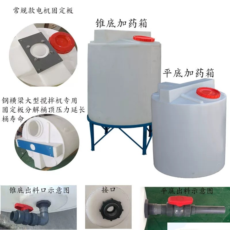 Dosing tank mixing barrel industrial chemical sewage chemical treatment with motor disinfection water mixing barrel measuring barrel cone