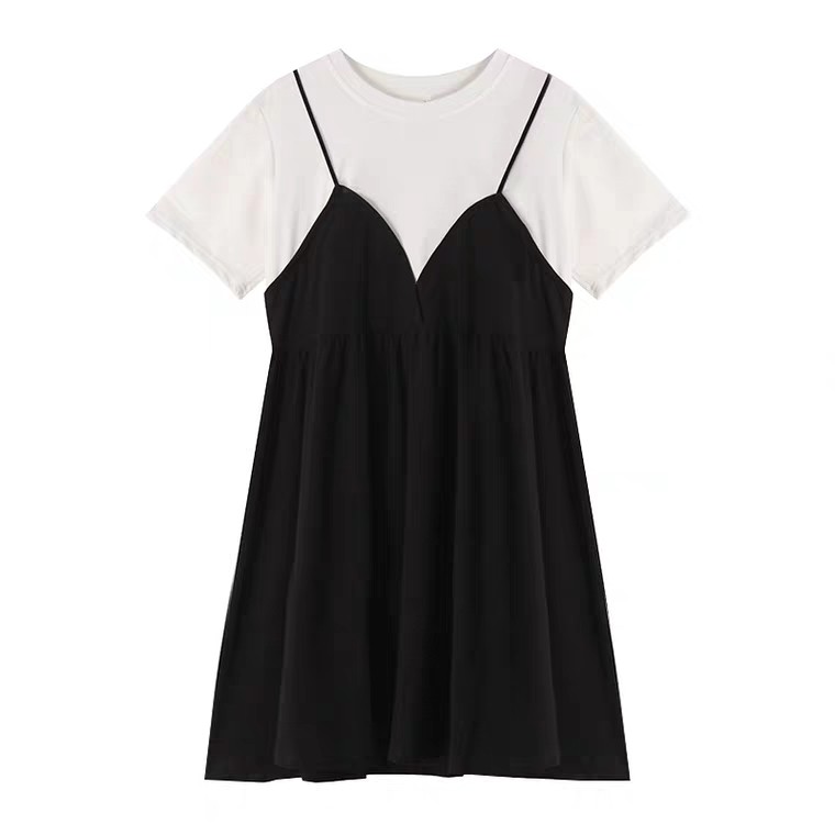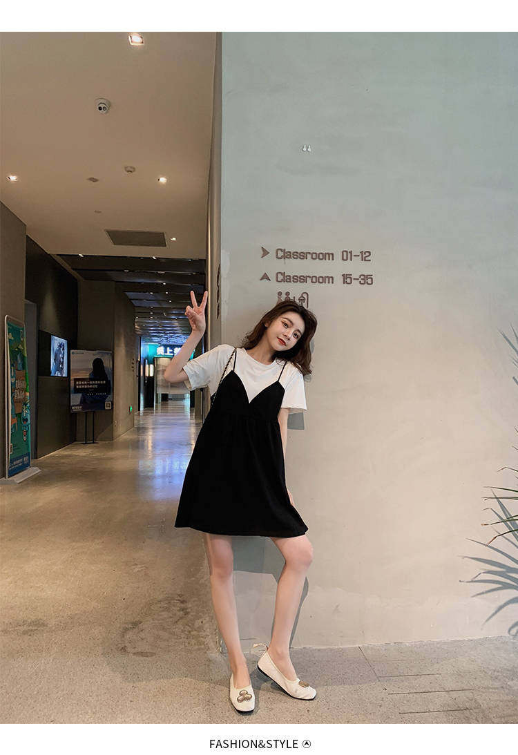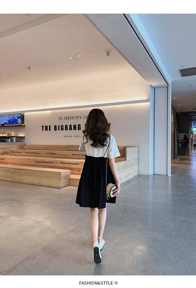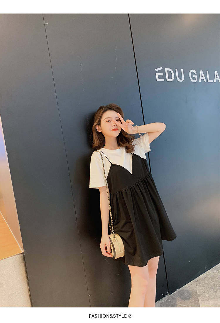 Maternity dress 2020 women's summer Korean style splicing fake two-piece round neck short-sleeved large size loose dress pregnant woman skirt trendy