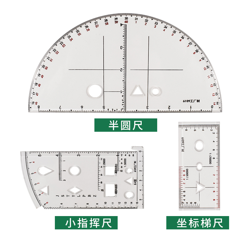 Artillery Command Ruler Combat Drawing Tools Set Ruler Coordinate Ruler Coordinate Ruler Ladder Ruler Semi-Circular Ruler Military Topography Geographic Coordinate Scale Scale Drawing Drawing Ruler Military Ruler Military Command Ruler
