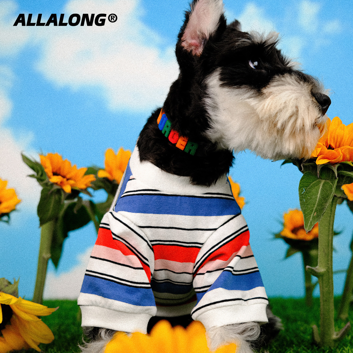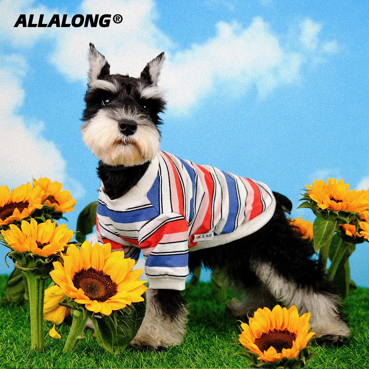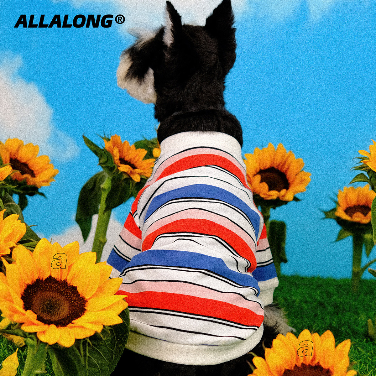 ALLARONG Pet T-shirt Puppet Coloured Stripes with thin strips of pure cotton dog clothes Snow Nereteddy