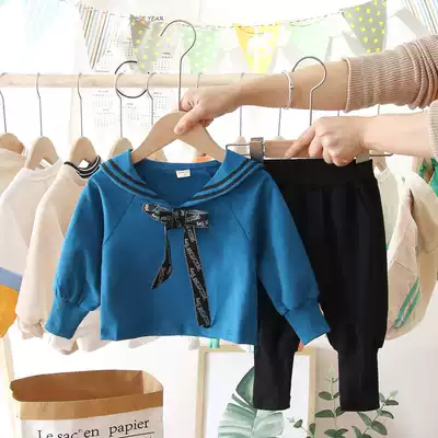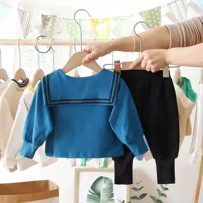 Female baby spring suit 2021 New Net Red foreign school wind navy collar two-piece suit children's clothes