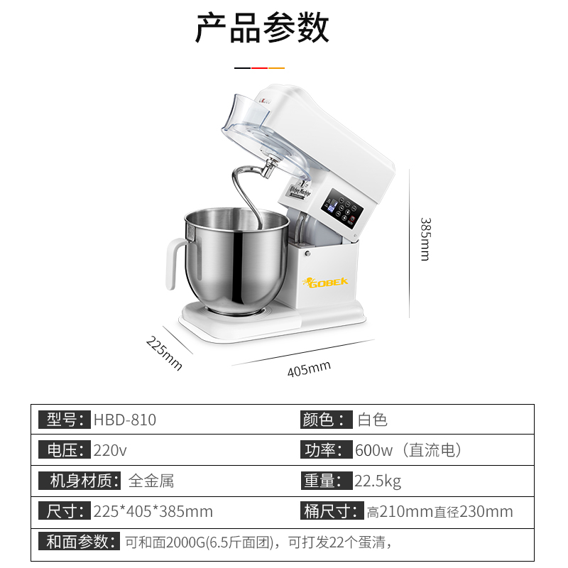 UKOEO chef's home and face machine small silent 7L knead machine for egg baking cream commercial HBD810