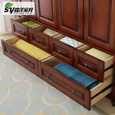American country modern simple 3 doors 4 doors 5 doors antique Old multi drawer rubber wood full solid wood coat whole cabinet Cabinet