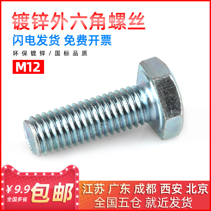 Carbon Steel Plated Galvanized External Hexagon Screws Bolt M12 * 16 20 20 30 30 35 45 45 45 50mm