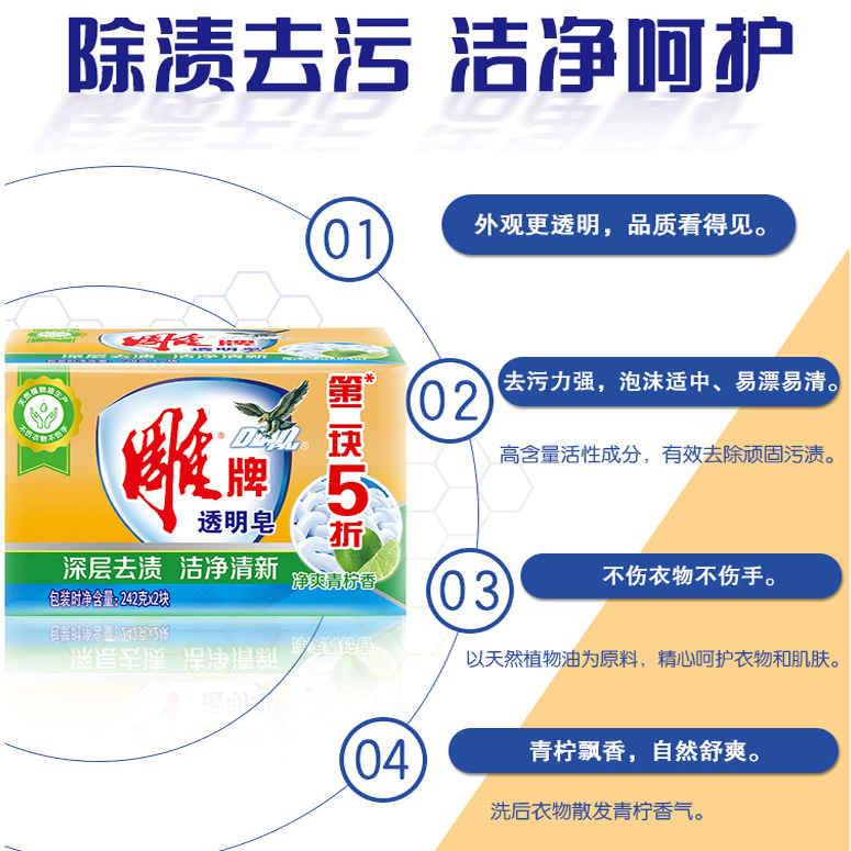 Carved Laundry Soap 242g * 10 Block 5 Efficacy Laundry Soap Carved transparent soap Soap Laundry Soap