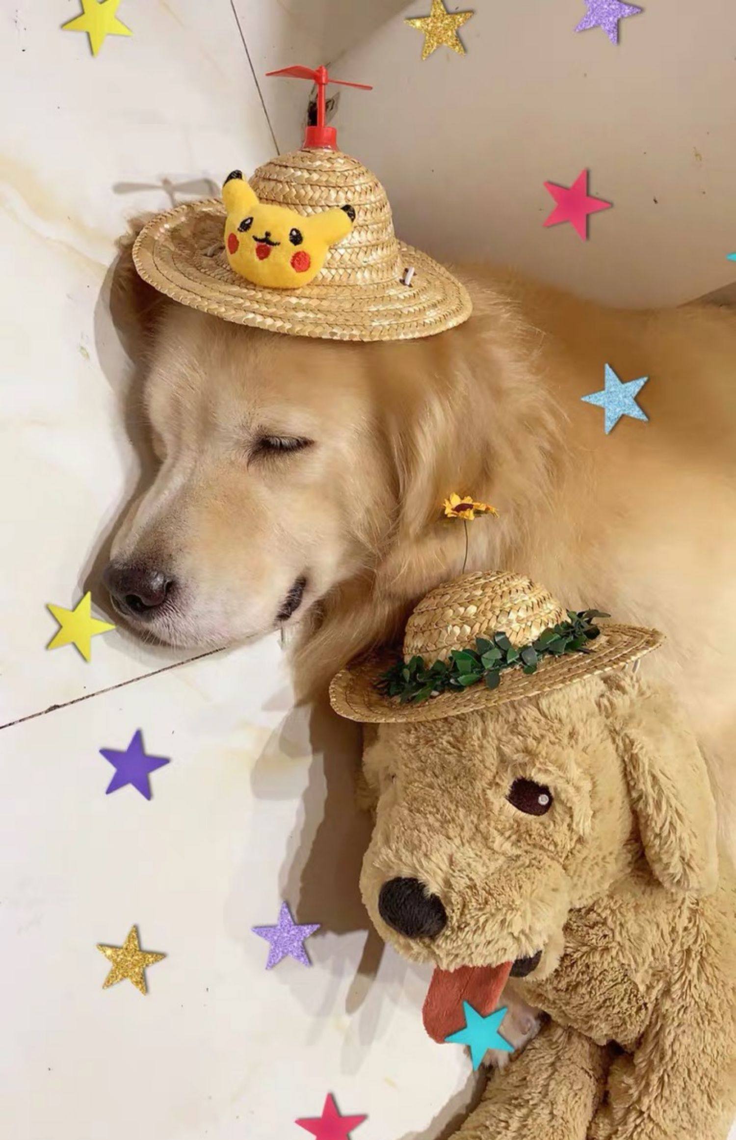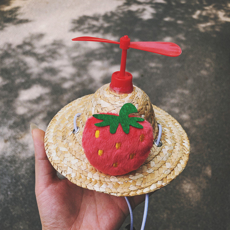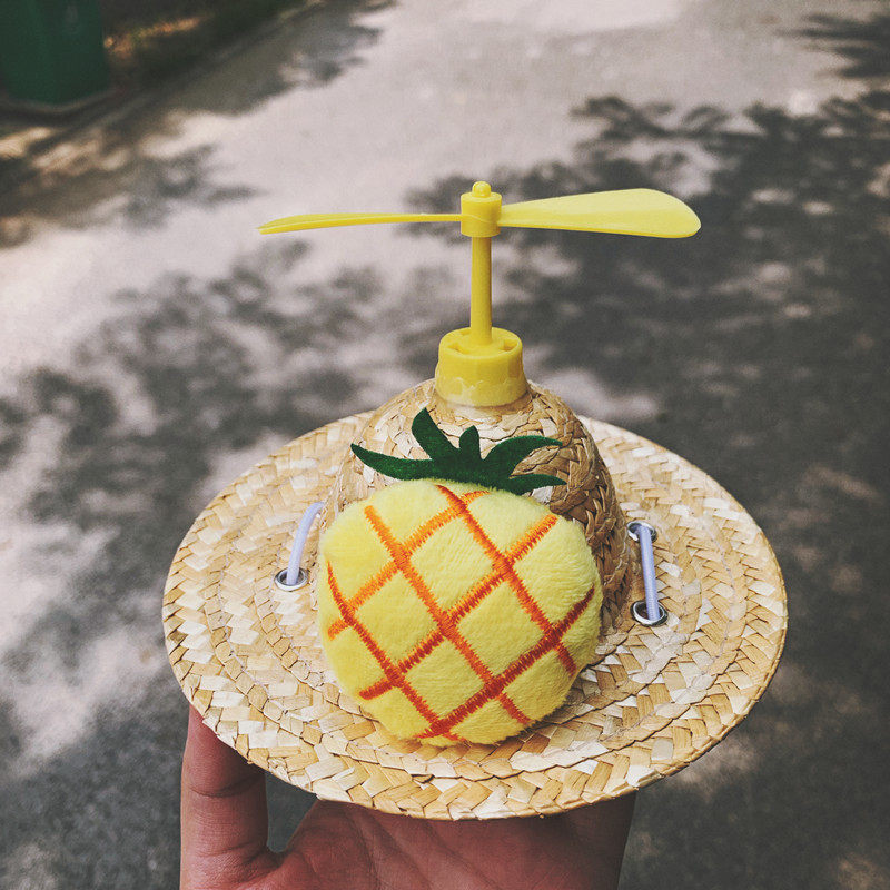 Pet cat dog strawhat rotates bamboo dragonfly sun cap decorated cap pineapple strawberry watermelon cap