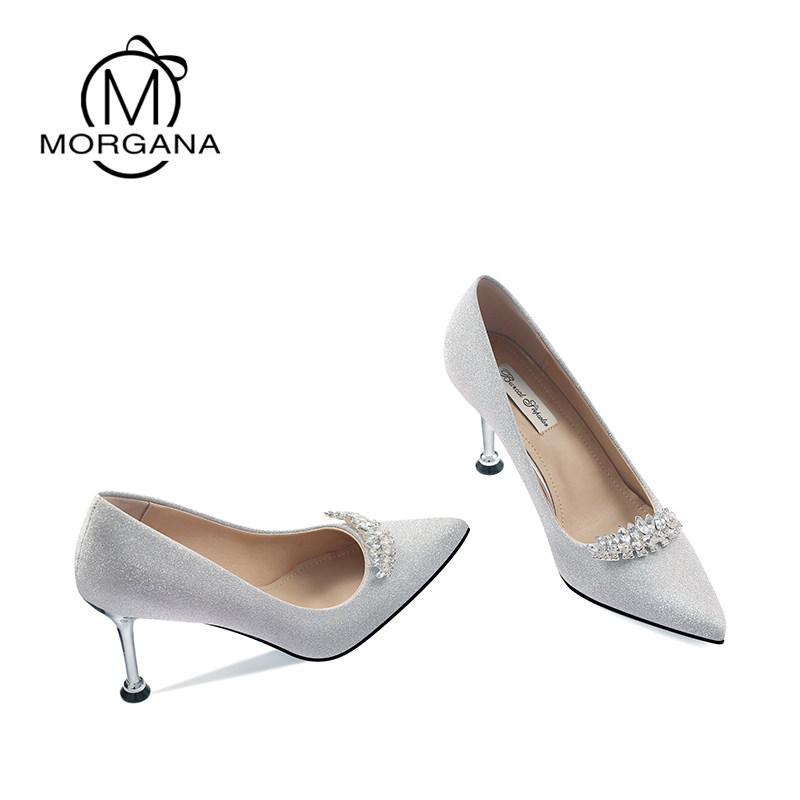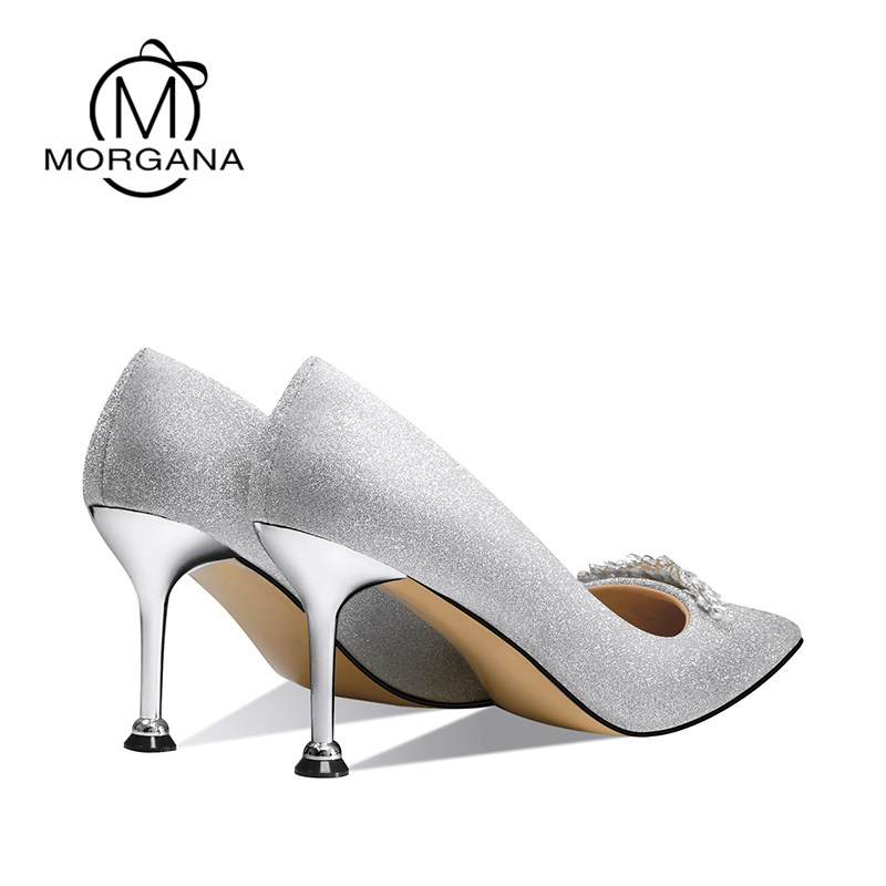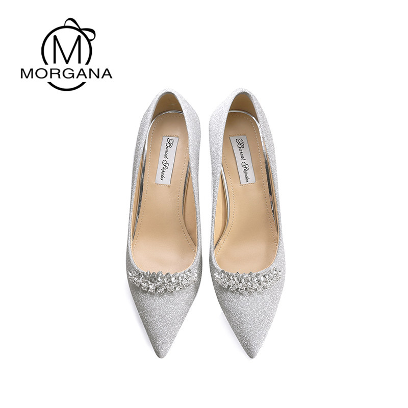 2021 new silver crystal shoes cat heel wedding shoes women's wedding dress shoes banquet catwalk usually wear bridal shoes